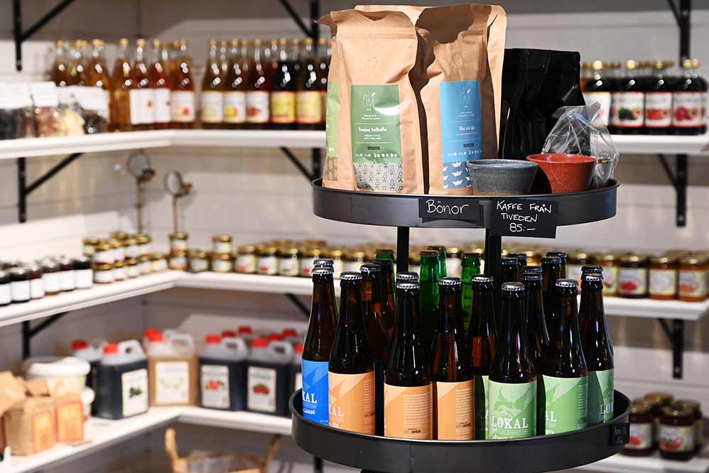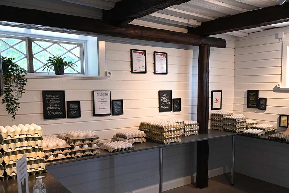 I vår butik hittar du ägg, kläder livsmedel, smådjursfoder, inredningsdetaljer och mycket annat. Ägg och nötkött produceras här på gården. Vi har även många produkter från lokala producenter, som exempelvis grillkol från lokala milor, fisk från Klangahamn och tomatprodukter från Karintorp. Är du intresserad av en köttlåda? Ring gärna och boka eller kom in i butiken och beställ. Det går också bra att handla styckdetaljer och här finns såväl färskt som fryst kött.